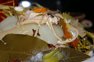 Stud the whole peeled onion with cloves. (Both the onion and the cloves add great depth to a poultry based broth, as they simmer with the other ingredients. The same might be true for vegetable stocks or other meat based stocks, but I have not experimented with that yet.)
